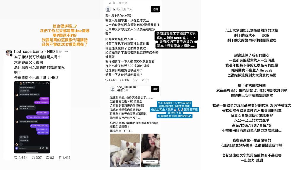 實際上,HBD 是透過經銷合作與社群聚效來推廣產品的「自電商」模式,經銷商需要購買商品囤貨、參加內部訓練;有人質這個制度賺到收入,也有人抱怨難抓到可預期獲利,這些不同的體驗混在網路上對撞,久了就變成是不是每個人都被拐去囤貨?這種分歧與質疑的擴大,也正是微商被妖魔化的主因之一。